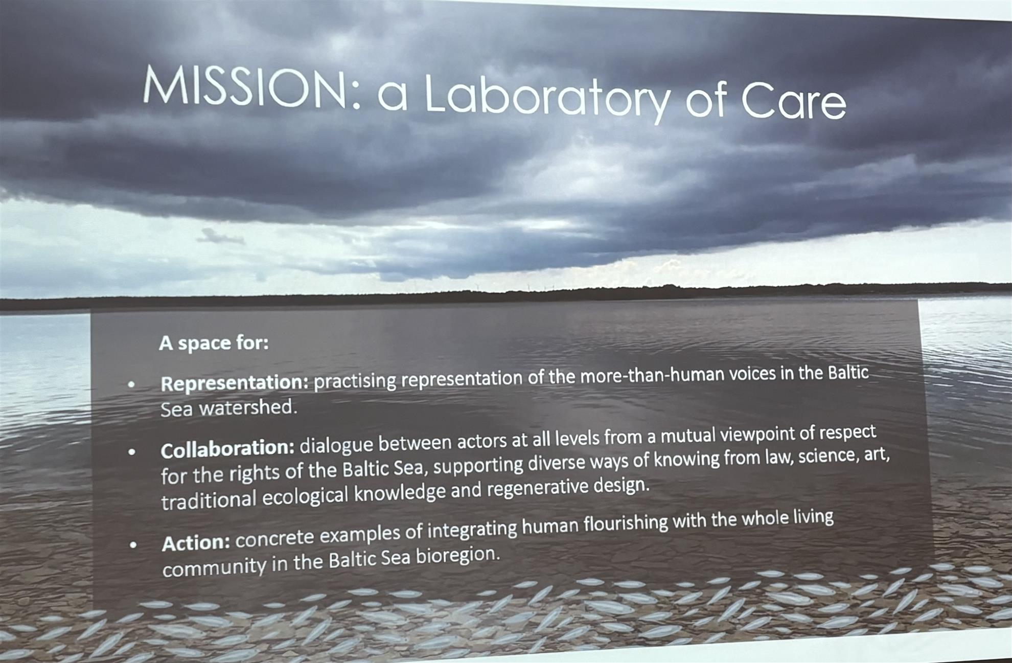 Dagens föreläsare var Ami Flood som berättade om Östersjöns ambassad ( Embassy of the Baltic Sea). Ami är en del av styrelsen. Ami har varit engagerad i Östersjön i många år. Intresset väcktes en midsommar när hon var utbjuden till skärgården. Tanken är att man ska representera naturen och inte bara handla om projekt.