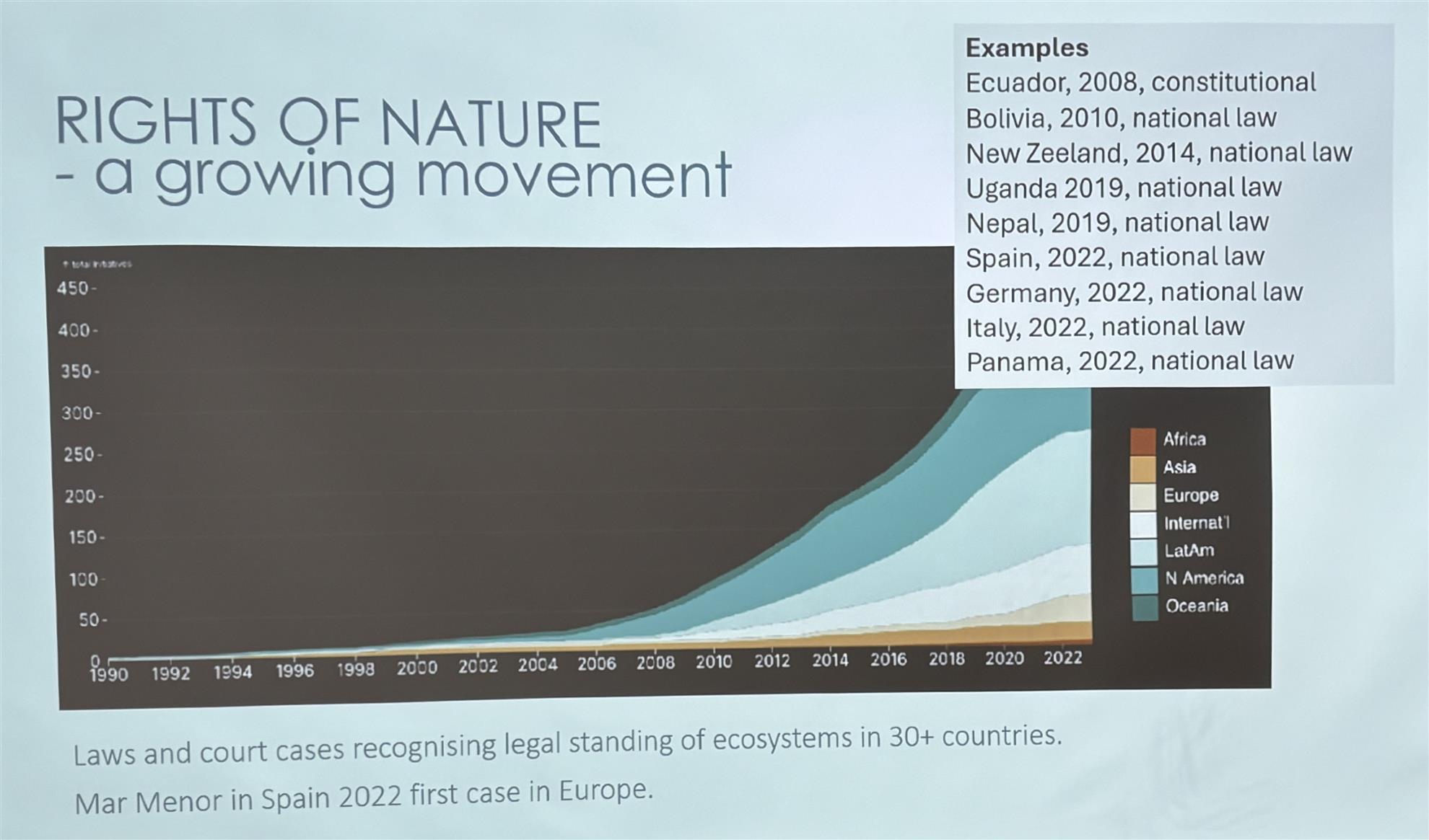 I många andra länder har det kommit upp många fall angående ”naturens rätt”. Människor försöker agera i naturens namn. Det finns utmaningar i många länder beroende på landets ledning.