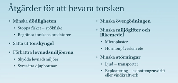 Föredraget handlade om torsken i Östersjön och frågan om den kommer att kunna återhämta sig.