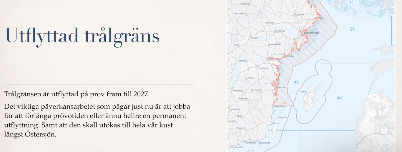 Alla diskussioner om fisk startar ofta med strömmingsfisket. I år är det första året sedan Sverige flyttade ut gränsen för trålfiske vilket Sveriges Organiserade Fiskeguider med flera organisationer har lobbar hårt för under många år ska bli en permanent trålgräns. Det storskaliga trålfisket är idag en miljardindustri då animaliskt protein används för att framställa allt ifrån nagellack, hudvårdsprodukter till lim och fiskmjöl som används som foder till odlad lax. Värt att nämna är att det går åt 6,5 kg strömming till ett kilo lax. 2026 års fiskekvot för strömming i Östersjön uppgår till 135 500 ton vilket motsvarar drygt 4 miljarder strömmingar. Försäljningspriset för en trålares strömmingfångst uppgår idag till 6 kronor per kilo strömming.