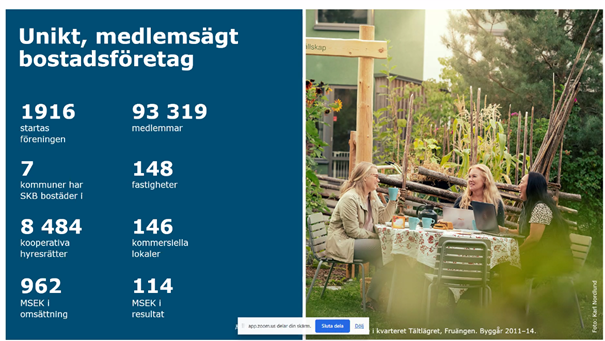 Fredagens föredragshållare var Yvonne Edenmark Lilliedahl som är kommunikationschef på SKB, Stockholms Kooperativa Bostadsförening. Hon berättade om upplåtelseformen kooperativ hyresrätt.