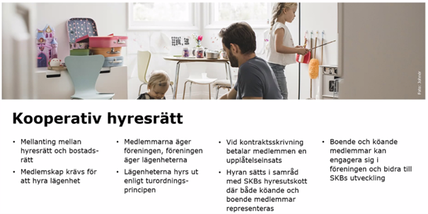 En kooperativ hyresrätt är ett mellanting mellan hyresrätt och bostadsrätt men legalt räknas som det hyresrätt. Man har en fast turordning i kön och den behåller man alltid.